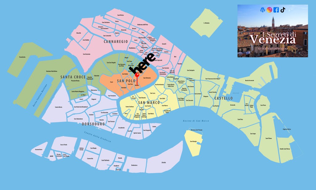 Se volete vederlo dovrete recarvi in una zona compresa tra Campo Sant’Aponal e Campo San Polo, vi consiglio di prendere come riferimento il piccolo supermercato Coop per non farvelo sfuggire perchè, giuro, potrebbe passarvi letteralmente sotto al naso.