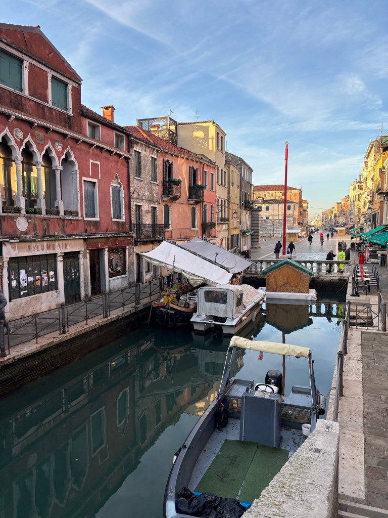 Uno dei miei percorsi preferiti a Venezia, per il senso di poesia che mi trasmettono, sono quelli indicati come “Rio Terà” (ad esempio il Rio terà dei Pensieri), una strana denominazione che indica strade costruite sopra ex canali, testimonianze mute di un passato ormai sommerso, anzi, interrato! Quando vi passo adoro immaginare come quel selciato potesse essere stato un canale e come sarebbe potuto apparire ai nostri occhi oggi. Tra l’altro anche qui, come in Campo San Barnaba, c’è spesso una bottega della frutta galleggiante, dovete assolutamente scoprirla!