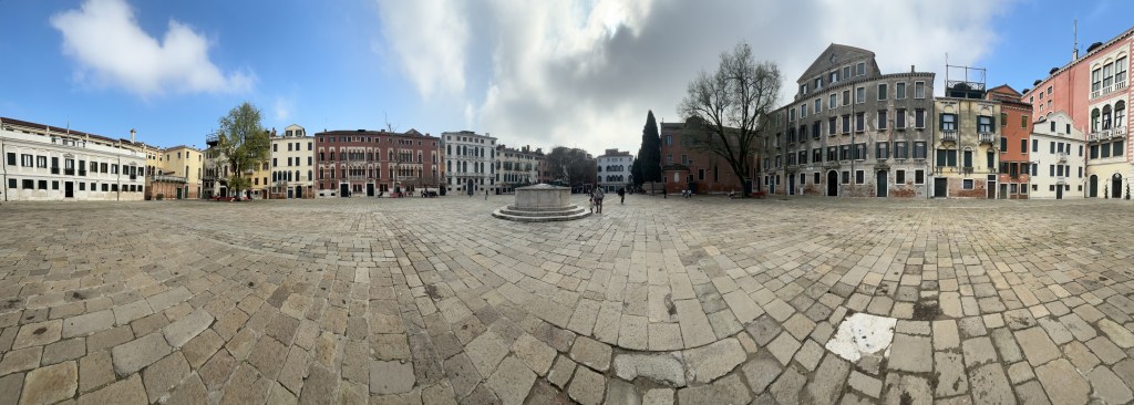 Si trova nel fulcro del Sestiere (il punto in basso a sinistra nella mappa a fine articolo) che fa da cuore alla città. Per dimensioni è il campo più grande della città, mentre in assoluto arriva secondo, dietro soltanto per estensione alla Piazza San Marco. Non è da meno la sua vera da pozzo, che con i suoi 320 cm di diametro è la più grande della città. Prende il nome dall’omonima chiesa che volge il suo abside direttamente sul campo e che, curiosità nella curiosità, proprio su quel lato vede esposta una targa marmorea del 1611 in cui viene espresso il divieto di svolgere attività quali mercati, feste e giochi. Infatti, questo campo divenne famoso dal punto di vista ludico e fu teatro, a mo’ di arena romana, di feste pubbliche, mercati e giochi, come per esempio giochi con la palla o la caccia al toro.