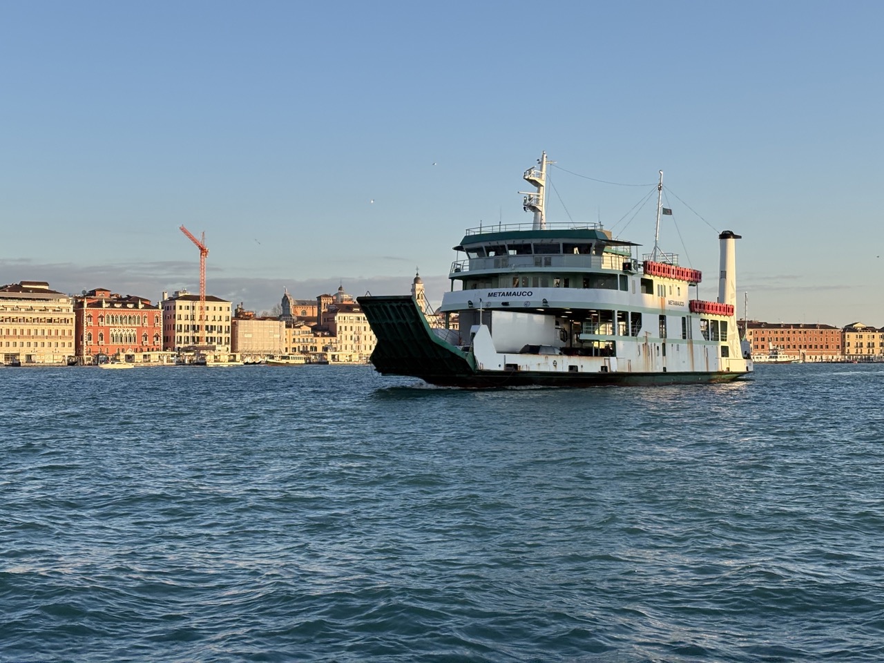 Se il vaporetto è il battito quotidiano che pulsa nei canali, le Motonavi e i Ferry-boat sono i polmoni di Venezia, giganti d’acciaio che respirano con il ritmo delle maree. Vederli sfilare davanti a San Marco ha sempre qualcosa di surreale: enormi masse di metallo che sembrano sfidare le leggi della fisica e del buonsenso, scivolando placide a pochi metri dai fragili merletti di Palazzo Ducale con le loro chiglie progettate per mitigare il moto ondoso.