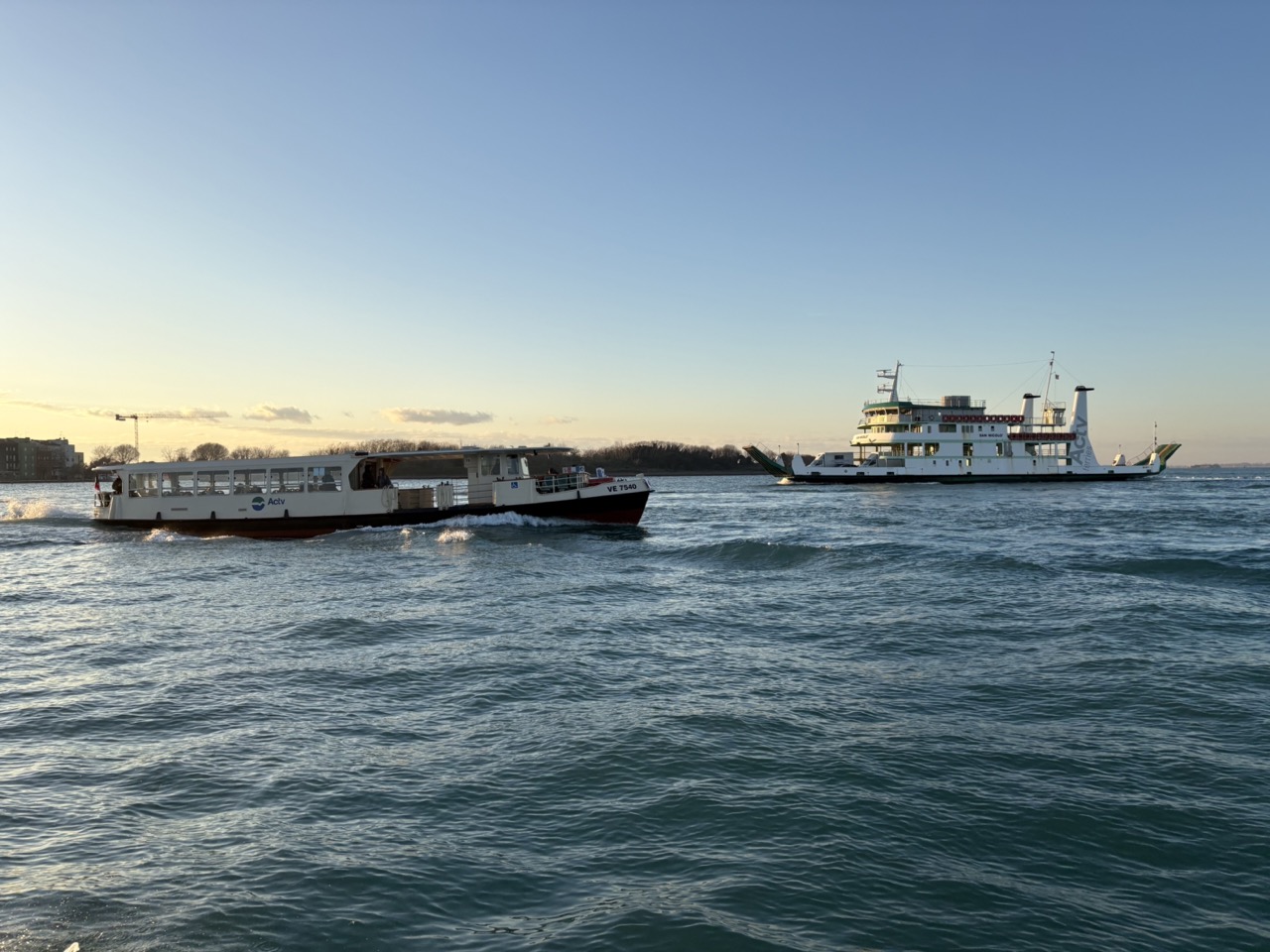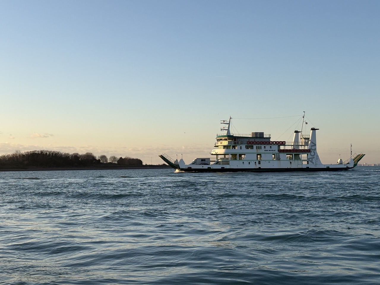 Il Ferry-boat è forse il mezzo più incredibile di tutti, un vero “ponte mobile” che permette l’assurdo: vedere file di auto, camion e autobus sospesi sull’acqua, come se la terraferma avesse deciso di mettersi in viaggio in fila indiana su una zattera di metallo. C’è un momento preciso, quando il portellone d’acciaio si abbatte sul pontile con un boato soffocato, in cui capisci che il confine tra strada e mare qui non esiste. È un rito di passaggio che trasforma il passeggero in un navigatore solitario, anche se sta solo andando a fare una passeggiata al Lido o a Pellestrina. Un filo conduttore invisibile cucito dai natanti.