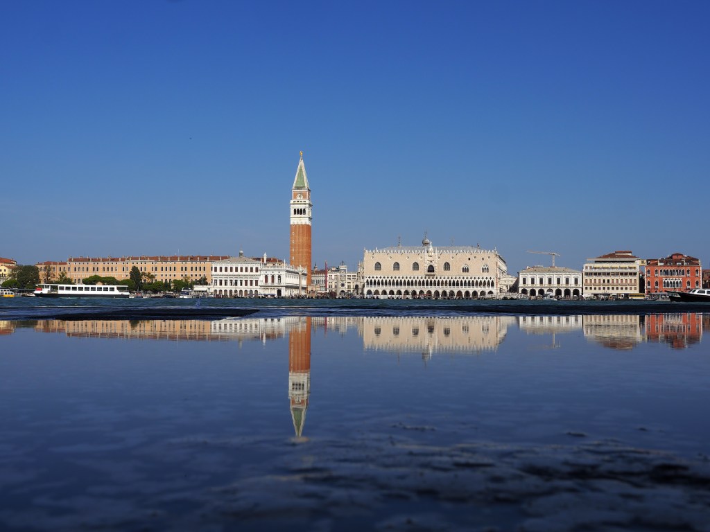 Piazza San Marco, il campanile e Palazzo Ducale visti e riflessi da San Giorgio